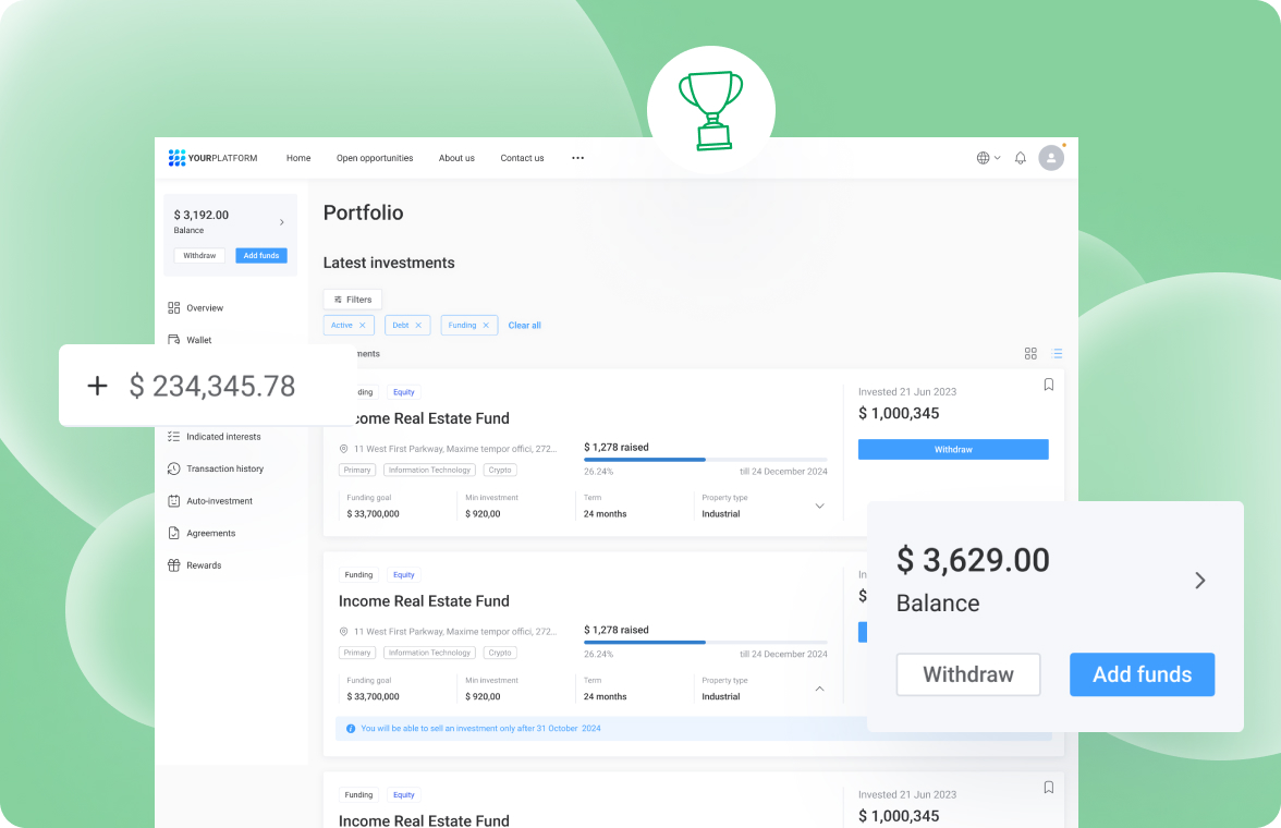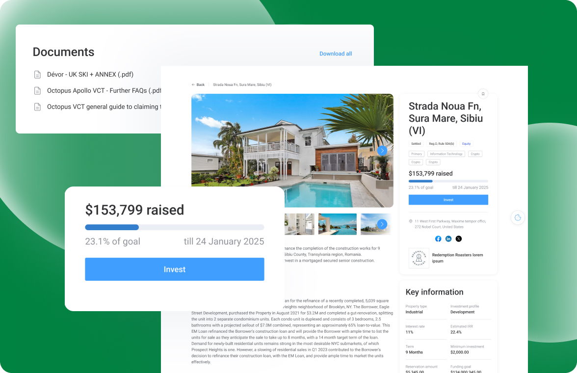 We make investing simple, profitable, and accessible. With high-return real estate and business opportunities, our crowdfunding platform lets investors grow wealth, earn passive income, and become owners—all with minimal capital and zero hassle.