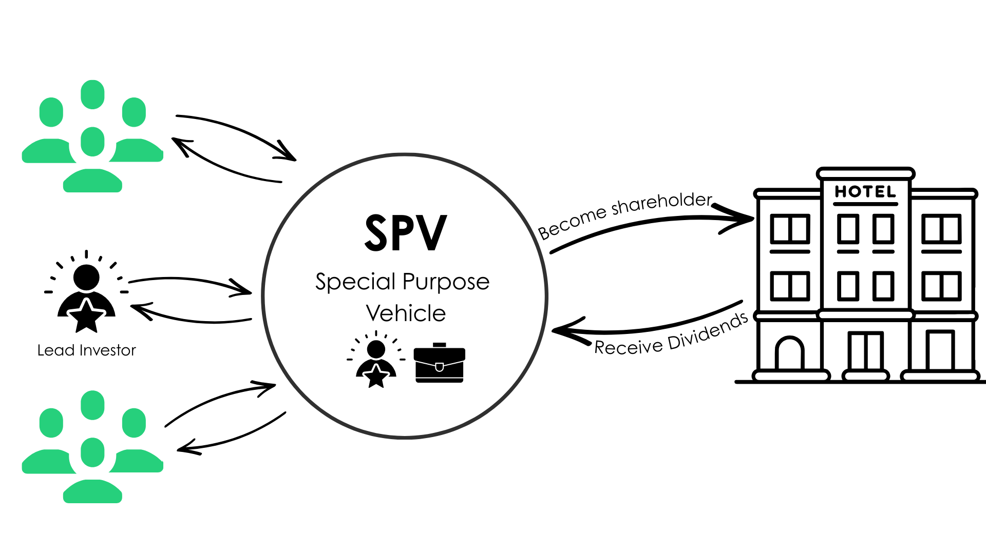 Investors participate in the SPV, which owns and manages the specific asset, ensuring clear ownership, transparency, and ring-fenced risk per project.